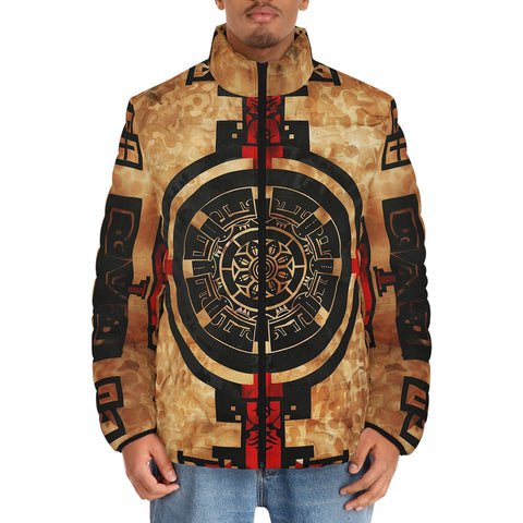 Down-Padded Puffer Jacket Ancient Mayan Artwork