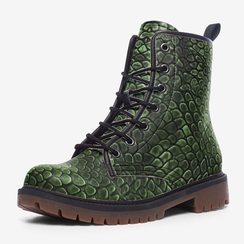 Leather Boots Green Alligator Texture Print